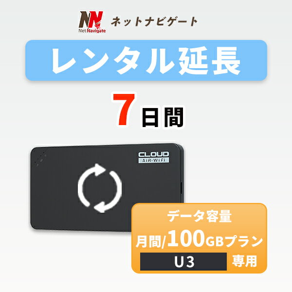 【レンタル延長】U3 月間100GBプラン モバイルWiFiルーター 7日 1週間 延長申込 専用ページ レンタルwifi レンタルwi-fi wifiレンタル ワイファイレンタル ポケットWiFi レンタルワイファイ Wi-Fi