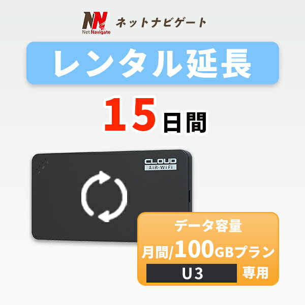 【レンタル延長】U3 月間100GBプラン モバイルWiFiルーター 15日 2週間 延長申込 専用ページ レンタルwifi レンタルwi-fi wifiレンタル ワイファイレンタル ポケットWiFi レンタルワイファイ Wi-Fi
