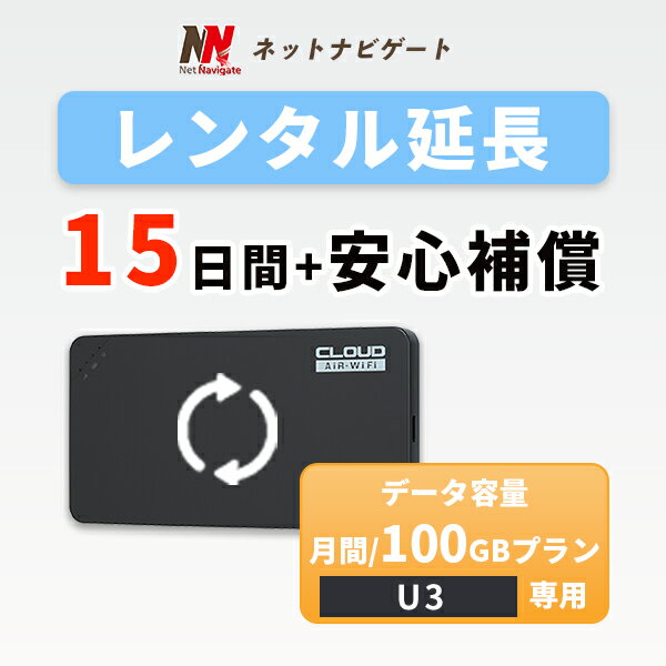 【レンタル延長】U3 月間100GBプラン (+安心補償) モバイルWiFiルーター 15日 2週間 延長申込 専用ページ レンタルwifi レンタルwi-fi wifiレンタル ワイファイレンタル ポケットWiFi レンタルワイファイ Wi-Fi