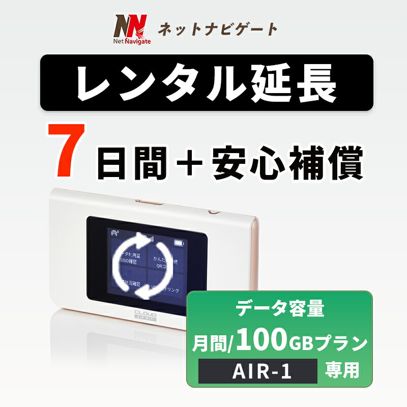 【レンタル延長】AIR-1 月間100GBプラン(+安心補償) モバイルWiFiルーター 7日 1週間 延長申込 専用ページ レンタルwifi レンタルwi-fi wifiレンタル ワイファイレンタル ポケットWiFi レンタルワイファイ Wi-Fi