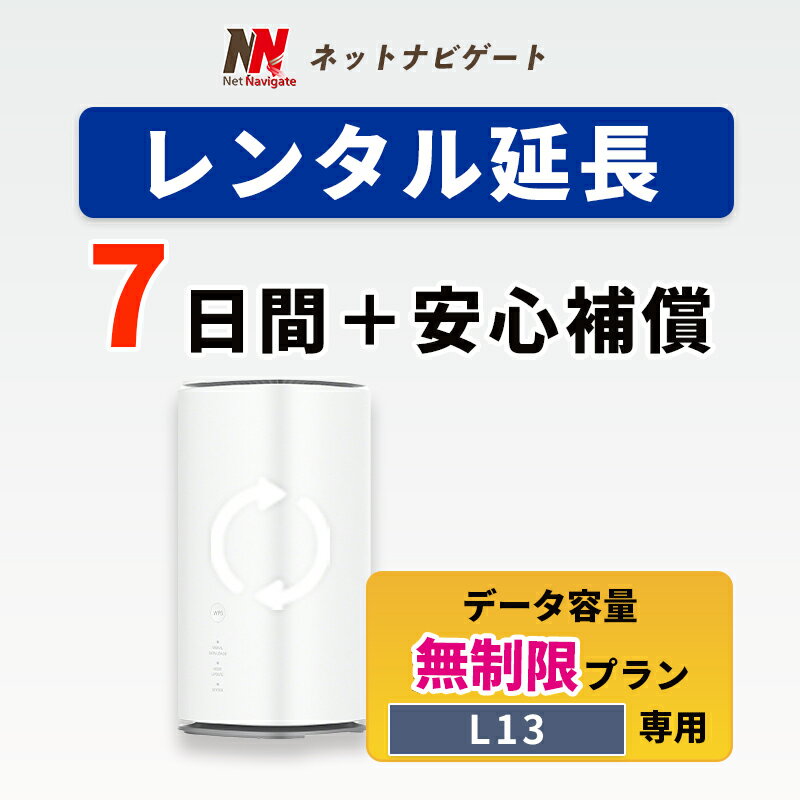 【レンタル延長】L13 無制限プラン(+安心補償) ホームルーター 7日 1週間 延長申込 専用ページ 置き型 レンタルwifi レンタルwi-fi wifiレンタル ワイファイレンタル レンタルワイファイ Wi-Fi