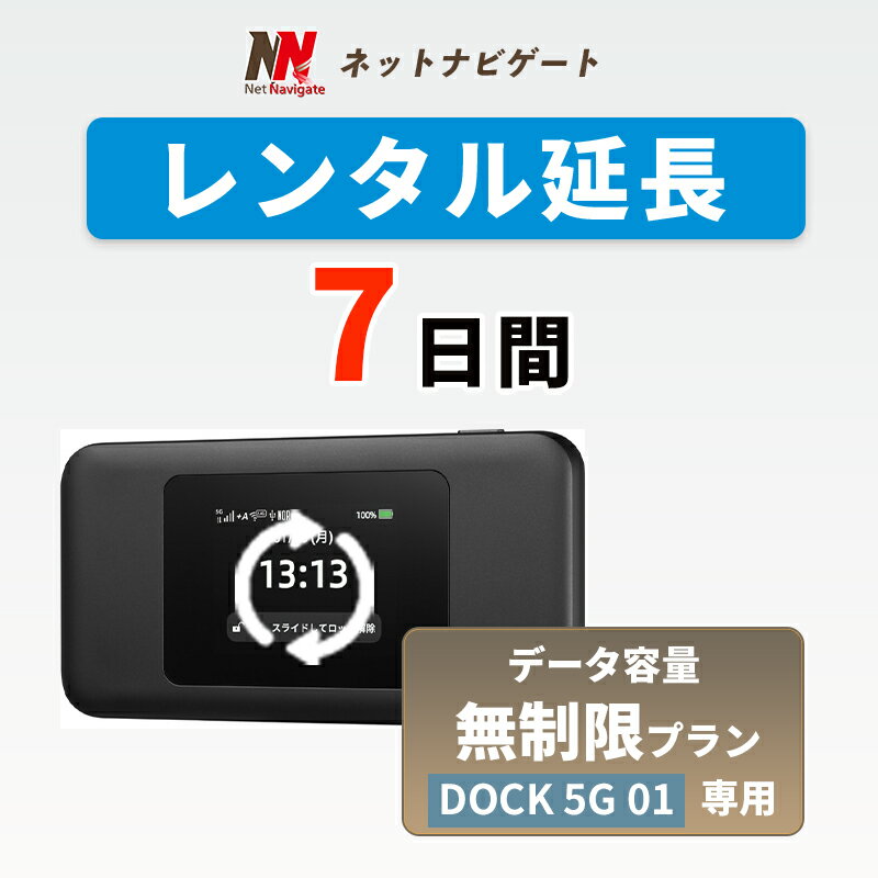 【レンタル延長】DOCK 5G 01 無制限プラン モバイルWiFiルーター 7日 1週間 延長申込 専用ページ レンタルwifi レンタルwi-fi wifiレンタル ワイファイレンタル ポケットWiFi レンタルワイファイ Wi-Fi