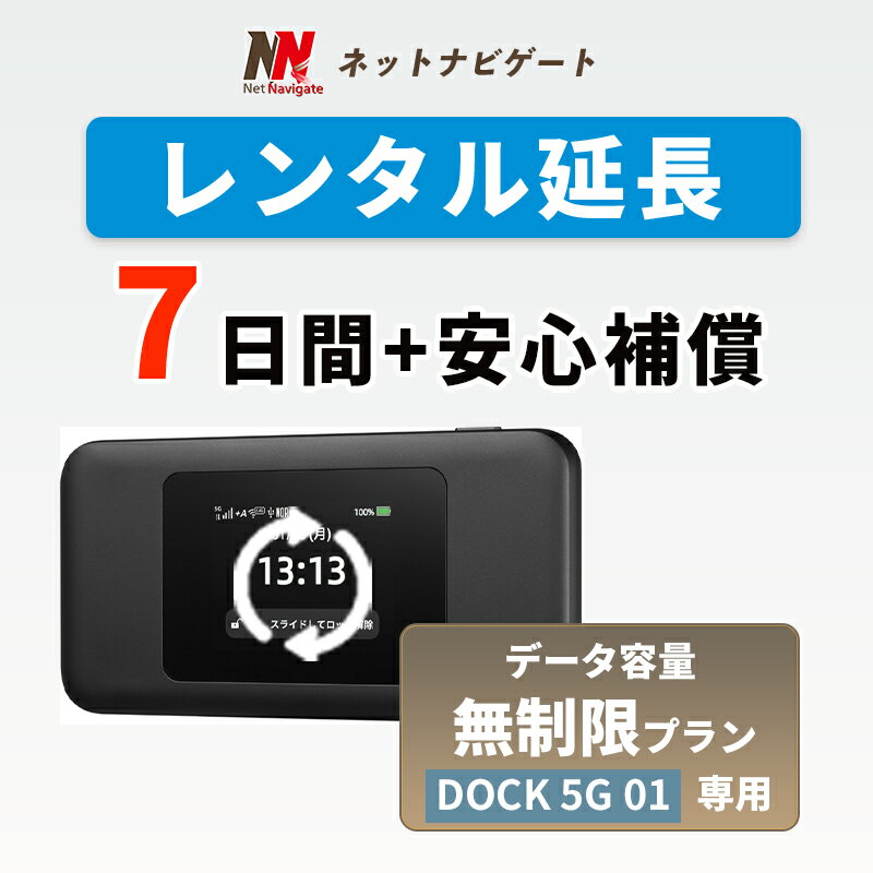 【レンタル延長】DOCK 5G 01 無制限プラン (+安心補償) モバイルWiFiルーター 7日 1週間 延長申込 専用ページ レンタルwifi レンタルwi-fi wifiレンタル ワイファイレンタル ポケットWiFi レンタルワイファイ Wi-Fi