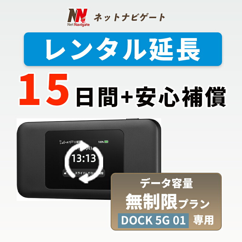 【レンタル延長】DOCK 5G 01 無制限プラン (+安心補償) モバイルWiFiルーター 15日 2週間 延長申込 専用ページ レンタルwifi レンタルwi-fi wifiレンタル ワイファイレンタル ポケットWiFi レンタルワイファイ Wi-Fi