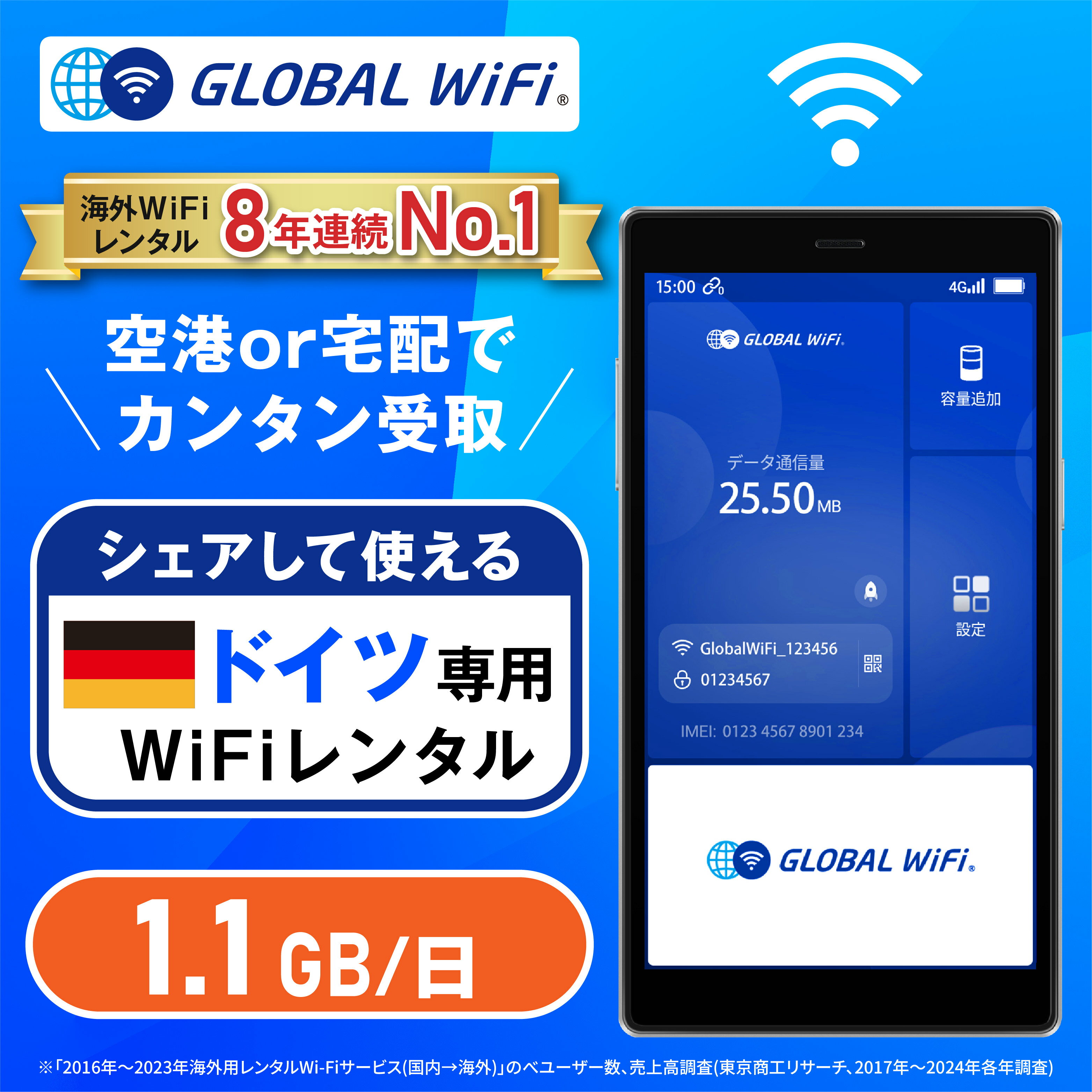 ドイツ専用 WiFi レンタル 1日あたり1.1GB 4G LTE 海外 WiFi ルーター 送料無料 空港受取 pocket wifi wi-fi ポケットwifi ワイファイ globalwifi グローバルwifi eSIM