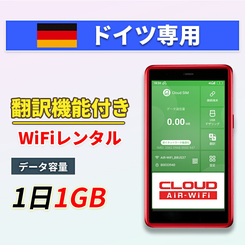 【翻訳機能付】 ドイツwifi レンタル 1GBプラン 1日~30日 大容量プラン 高速データ 4G LTE 持ち運び 旅行 出張 携帯 海外 7日 10日間 14日 15日 1週間 2週間 1ヵ月 ルーター ポケットwifi ワイファイ ネットナビゲート