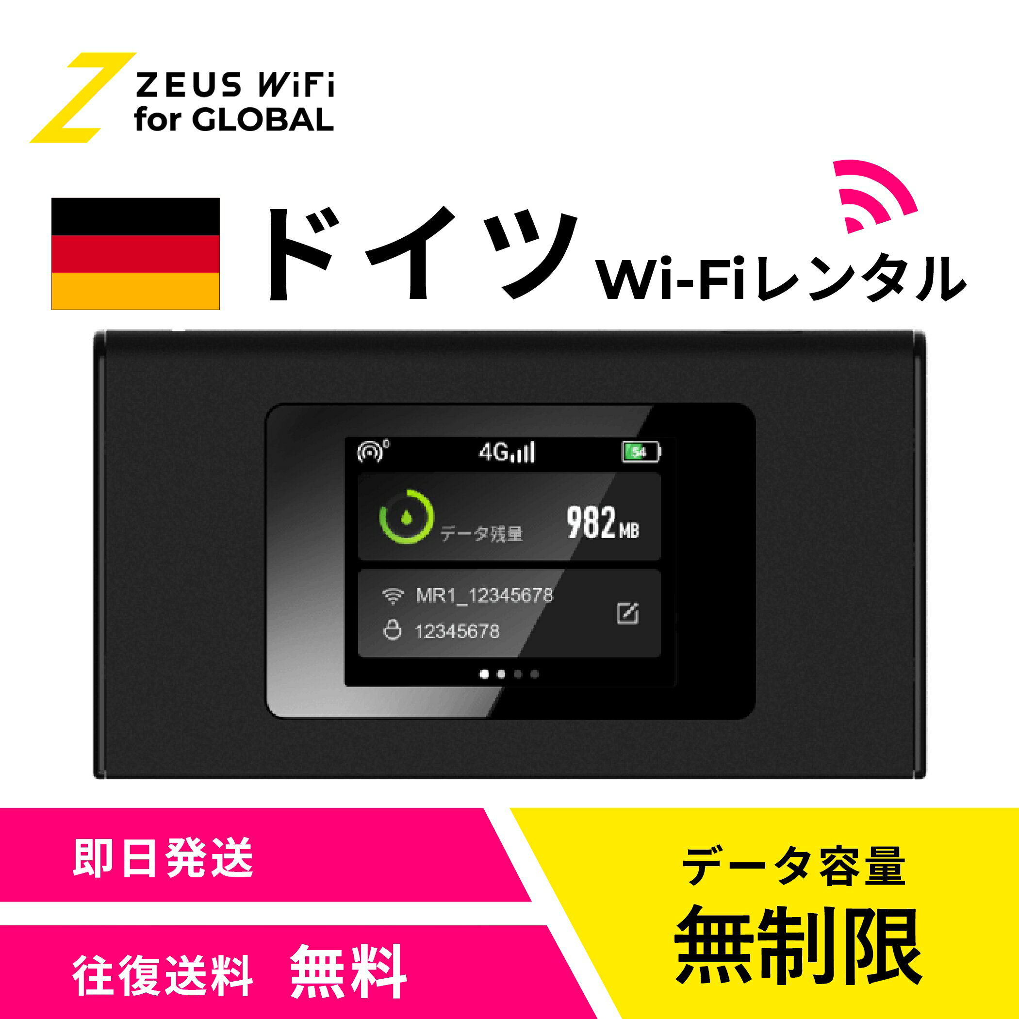 ドイツ専用 WiFi レンタル 無制限 データ使い放題 4G LTE 海外 WiFi ルーター 送料無料 空港受取 pocket wifi wi-fi ポケットwifi ワイファイ globalwifi グローバルwifi eSIM