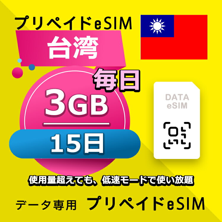 データ通信 eSIM 台湾 3GB / 毎日 15日間 esim SIMプリー プリペイド esim 低速データ無制限 esim データ専用 Chunghwa