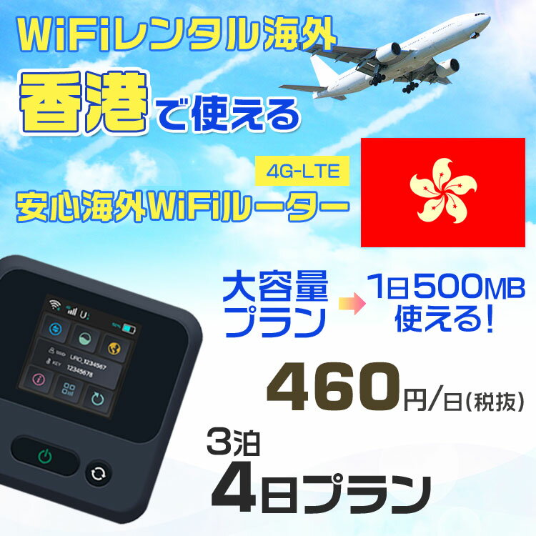 WiFi レンタル 海外 香港 sim 内蔵 Wi-Fi 海外旅行wifi モバイル ルーター 海外旅行WiFi 3泊4日 プラン wifi 香港 simカード 4日間 大容量 1日500MB 1日料金 460円 レンタルWiFi海外 即日発送 wifiレンタル Wi-Fiレンタル プリペイド sim 香港 4日 ワイファイ 空港 旅行