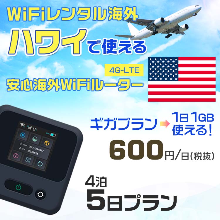 WiFi レンタル 海外 ハワイ sim 内蔵 Wi-Fi 海外旅行wifi モバイル ルーター 海外旅行WiFi 4泊5日 プラン wifi ハワイ simカード 5日間 ギガプラン 1日1GB1日料金600円 レンタルWiFi海外 即日発送 wifiレンタル Wi-Fiレンタル プリペイド sim ハワイ 5日 ワイファイ 空港