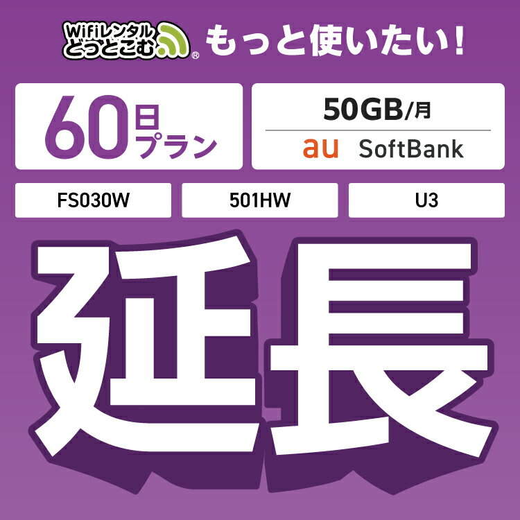 【延長専用】U3 FS030W 501HW 50GB モデル wifi レンタル 延長 専用 60日 ポケットwifi Pocket WiFi レンタルwifi ルーター wi-fi wifiレンタル ポケットWiFi ポケットWi-Fi WiFiレンタルどっとこむ