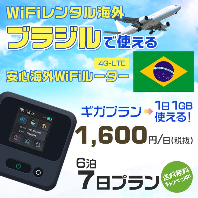 WiFi レンタル 海外 ブラジル sim 内蔵 Wi-Fi 海外旅行wifi モバイル ルーター 海外旅行WiFi 6泊7日 プラン wifi ブラジル simカード 7日間 ギガプラン 1日1GB 1日1600円 レンタルWiFi海外 即日発送 wifiレンタル Wi-Fiレンタル プリペイド sim ブラジル 7日 ワイファイ