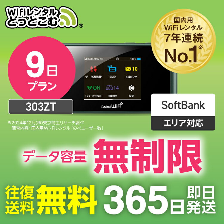 【送料無料・即日発送】WiFi レンタル 9日 無制限 レンタルwifi レンタルwi-fi wifiレンタル ワイファイレンタル ポケットWiFi レンタルワイファイ Wi-Fi ソフトバンク 空港受取 303ZT 引っ越しwifi 入院wifi 一時帰国wifi テレワーク 引越wifi 国内専用 在宅勤務 契約不要
