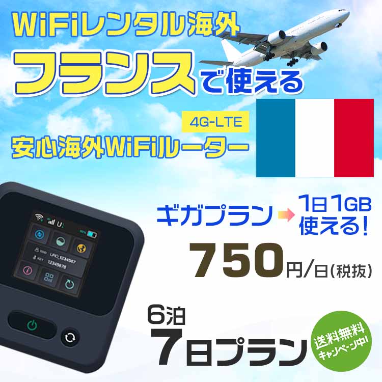 WiFi レンタル 海外 フランス sim 内蔵 Wi-Fi 海外旅行wifi モバイル ルーター 海外旅行WiFi 6泊7日 プラン wifi フランス simカード 7日間 ギガ放題 1日1GB 1日料金750円 レンタルWiFi海外 即日発送 wifiレンタル Wi-Fiレンタル プリペイド sim フランス 7日 ワイファイ
