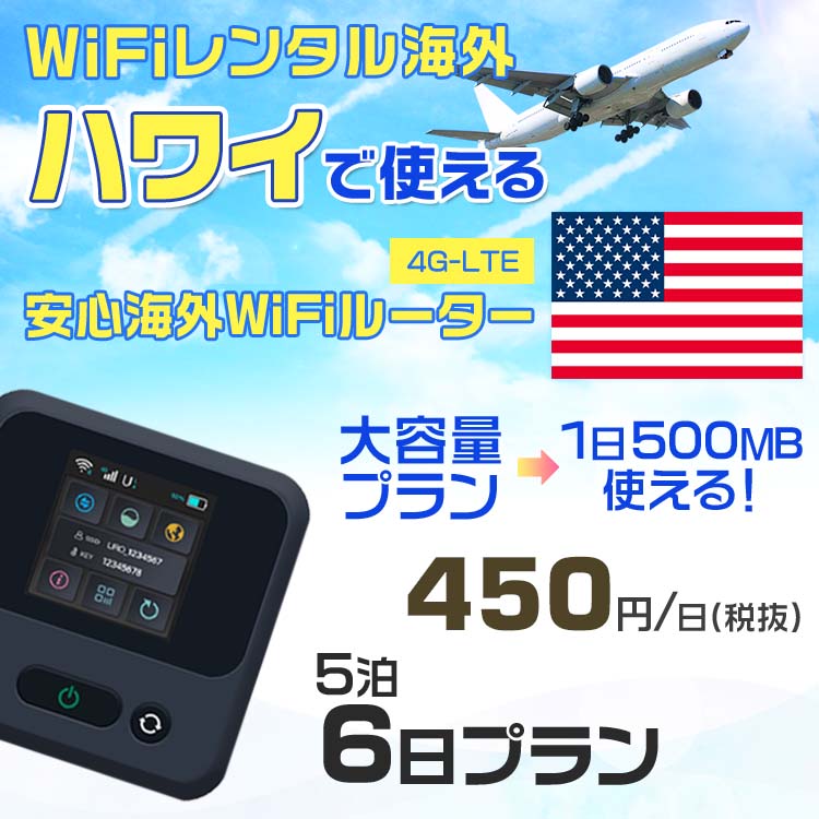 WiFi レンタル 海外 ハワイ sim 内蔵 Wi-Fi 海外旅行wifi モバイル ルーター 海外旅行WiFi 5泊6日 プラン wifi ハワイ simカード 6日間 大容量 1日500MB 1日料金 450円 レンタルWiFi海外 即日発送 wifiレンタル Wi-Fiレンタル プリペイド sim ハワイ 6日 ワイファイ 空港
