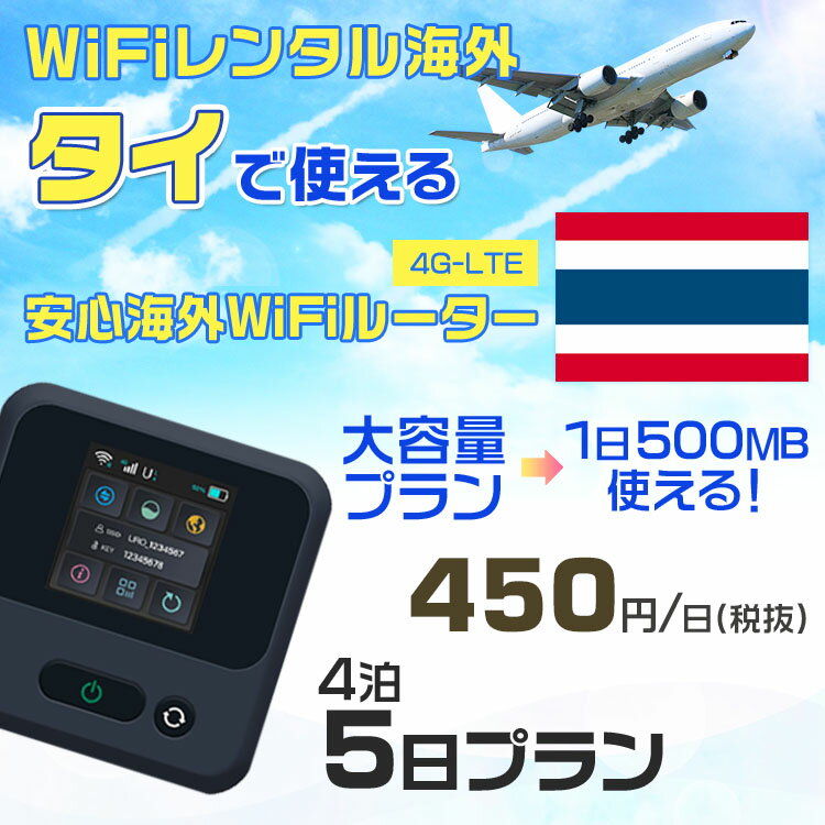 WiFi レンタル 海外 タイ sim 内蔵 Wi-Fi 海外旅行wifi モバイル ルーター 海外旅行WiFi 4泊5日 プラン wifi タイ simカード 5日間 大容量 1日500MB 1日料金 450円 レンタルWiFi海外 即日発送 wifiレンタル Wi-Fiレンタル プリペイド sim タイ 5日 ワイファイ 空港 旅行