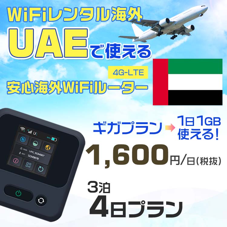 WiFi レンタル 海外 アラブ首長国連邦 sim 内蔵 Wi-Fi 海外旅行wifi モバイル ルーター 海外旅行WiFi 3泊4日 wifi アラブ首長国連邦 simカード 4日間 ギガ 1日1GB1600円 レンタルWiFi海外 wifiレンタル Wi-Fiレンタル プリペイド sim アラブ首長国連邦 4日 ワイファイ