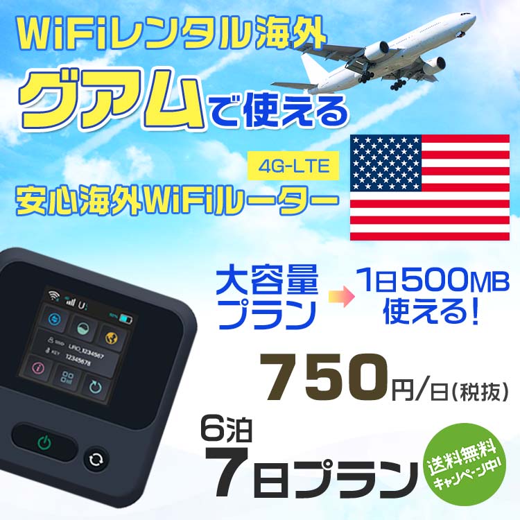 WiFi レンタル 海外 グアム sim 内蔵 Wi-Fi 海外旅行wifi モバイル ルーター 海外旅行WiFi 6泊7日 プラン wifi グアム simカード 7日間 大容量 1日500MB 1日料金 750円 レンタルWiFi海外 即日発送 wifiレンタル Wi-Fiレンタル プリペイド sim グアム 7日 ワイファイ 空港