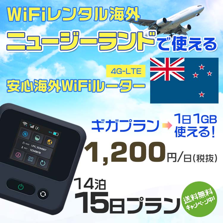 WiFi レンタル 海外 ニュージーランド sim 内蔵 Wi-Fi 海外wifi モバイル ルーター 海外旅行WiFi 14泊15日 wifi ニュージーランド simカード 15日間 ギガ放題 1日1GB 1日 1200円 レンタルWiFi海外 即日発送 wifiレンタル Wi-Fiレンタル sim ニュージーランド 15日 ワイファイ