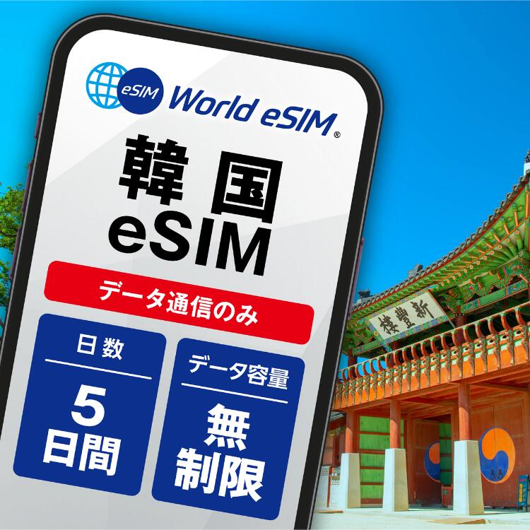 【韓国eSIM5日 データ無制限 データ通信のみ可能】 韓国 SK eSIM SIM SIMカード プリペイドSIM 5日 データ 通信 無制限 メールで受取 一時帰国 留学 短期 出張 海外 海外旅行