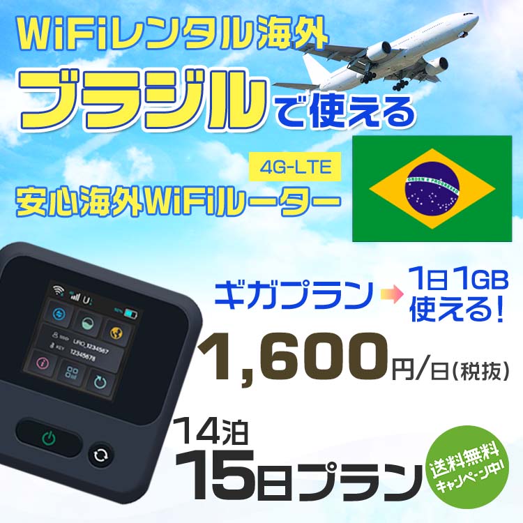 WiFi レンタル 海外 ブラジル sim 内蔵 Wi-Fi 海外旅行wifi モバイル ルーター 海外旅行WiFi 14泊15日 プラン wifi ブラジル simカード 15日間 ギガプラン 1日1GB 1日1600円 レンタルWiFi海外 即日発送 wifiレンタル Wi-Fiレンタル プリペイド sim ブラジル 15日 ワイファイ