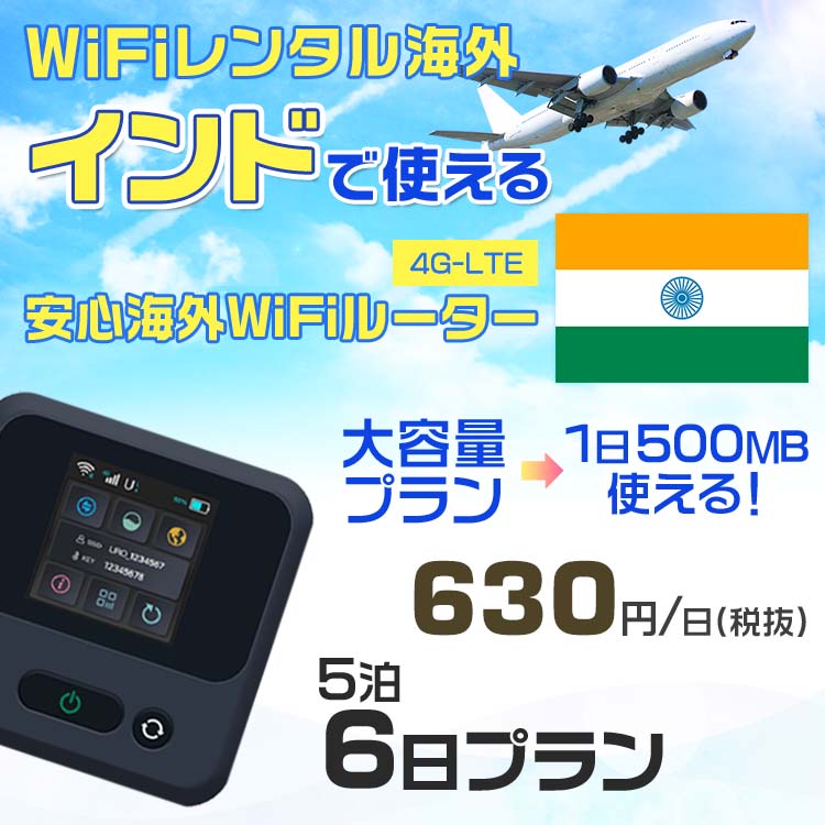 WiFi レンタル 海外 インド sim 内蔵 Wi-Fi 海外旅行wifi モバイル ルーター 海外旅行WiFi 5泊6日 プラン wifi インド simカード 2日間 大容量 1日500MB 1日料金 630円 レンタルWiFi海外 即日発送 wifiレンタル Wi-Fiレンタル プリペイド sim インド 2日 ワイファイ 空港