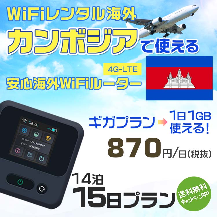 WiFi レンタル 海外 カンボジア sim 内蔵 Wi-Fi 海外旅行wifi モバイル ルーター 海外旅行WiFi 14泊15日 wifi カンボジア simカード 15日間 ギガプラン 1日1GB 1日870円 レンタルWiFi海外 即日発送 wifiレンタル Wi-Fiレンタル プリペイド sim カンボジア 15日 ワイファイ