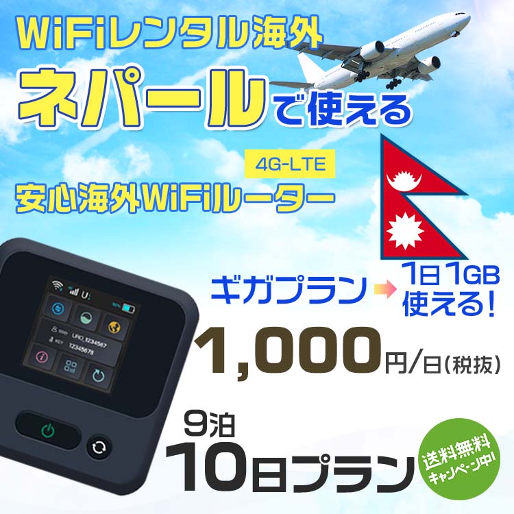 WiFi レンタル 海外 ネパール sim 内蔵 Wi-Fi 海外旅行wifi モバイル ルーター 海外旅行WiFi 9泊10日 プラン wifi ネパール simカード 10日間 ギガプラン 1日1GB 1日1000円 レンタルWiFi海外 即日発送 wifiレンタル Wi-Fiレンタル プリペイド sim ネパール 10日 ワイファイ