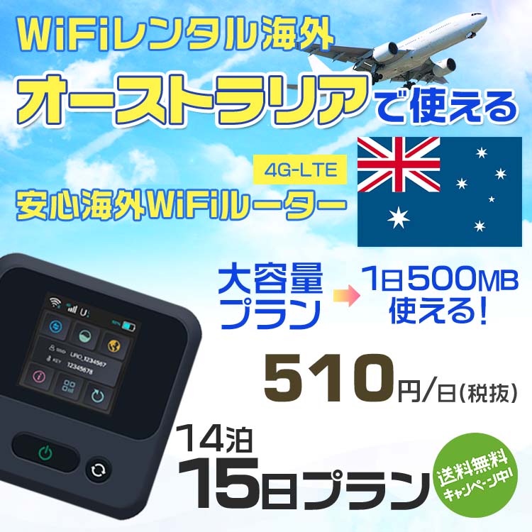 WiFi レンタル 海外 オーストラリア sim 内蔵 Wi-Fi 海外旅行wifi モバイル ルーター 海外旅行WiFi 14泊15日 wifi オーストラリア simカード 15日間 大容量 1日500MB 1日 510円 レンタルWiFi海外 即日発送 wifiレンタル Wi-Fiレンタル sim オーストラリア 15日 ワイファイ