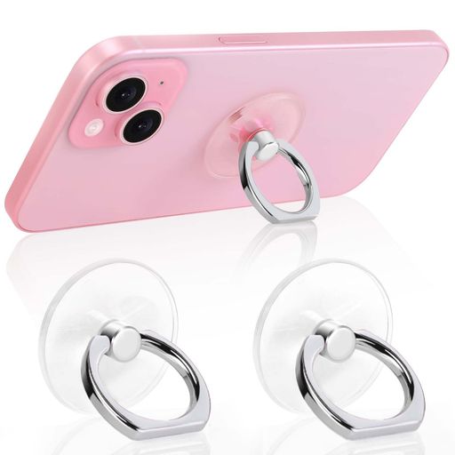Jsoerpayスマホリング透明薄型バンカーリング360°回転落下防止指輪型スタンド機能スマホ用透明スマホリング、ほとんどのスマホ、タブレット、ケースに対応(2個シルバー)