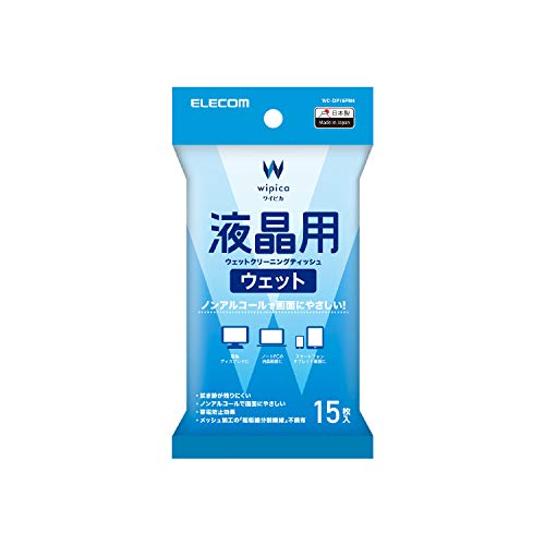 エレコム ウェットティッシュ 液晶用 クリーナー 15枚入り 液晶画面にやさしいノンアルコールタイプ 日本製 WC-DP15PN4 送料無料