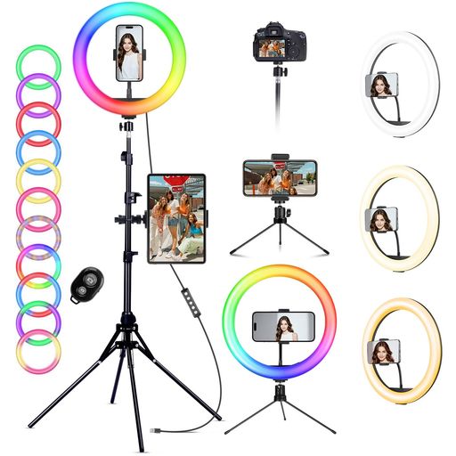 KOSCHEAL12インチリングライト176cm卓上スタンド付き自撮り棒兼用40のRGBモード三脚付き撮影ライト俯瞰撮影スマホクリップ式女優ライトビデオライトUSB給電适用于ビデオ録画、ズーム会議、T…