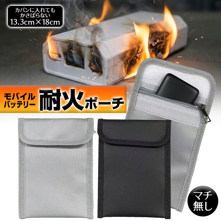 モバイルバッテリー 発火防止 ケース 発火防止ポーチ ファイヤーガード 耐火ポーチ 13×18cm 耐火バッグ 防爆バッグ リチウム電池 モバイルバッテリー 保管 袋 高温耐性 難燃 旅行 出張 セーフティーケース 機内持ち込み