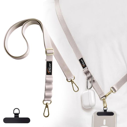 [ZXZone]スマホショルダー斜めがけ首掛け肩掛け長い160cm幅2cm長さ調節可能ストラップ1本+タグパッチ1枚入り紛失・落下・盗難防止便利(アイボリーホワイト160CM)