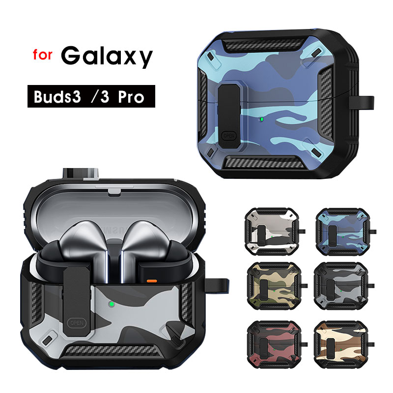 Galaxy Buds3ケース Galaxy Buds3 Pro ケース カラビナ付 ギャラクシー バッズ 3 ケース 安全ロック付き ギャラクシーバッズ3プロ カバー 耐衝撃 イヤホンケース galaxy buds3ケース 紛失防止 Galaxy buds3 pro ケース 充電ケース 迷彩柄 全面保護 装着充電可能