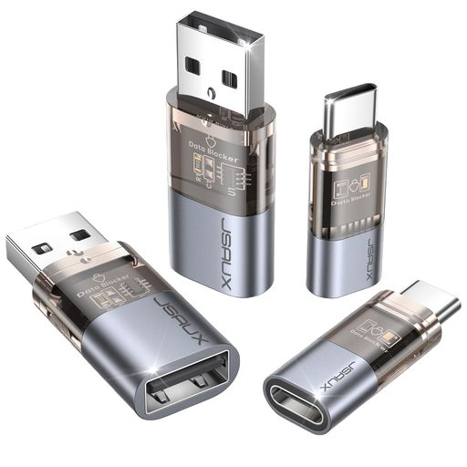 JSAUXUSBデータブロッカー&USBCデータブロッカー(4パック)透明USBA-A&USBC-USBCデータブロッカー充電専用ジュースジャッキング防止ハッキング拒否安全な充電