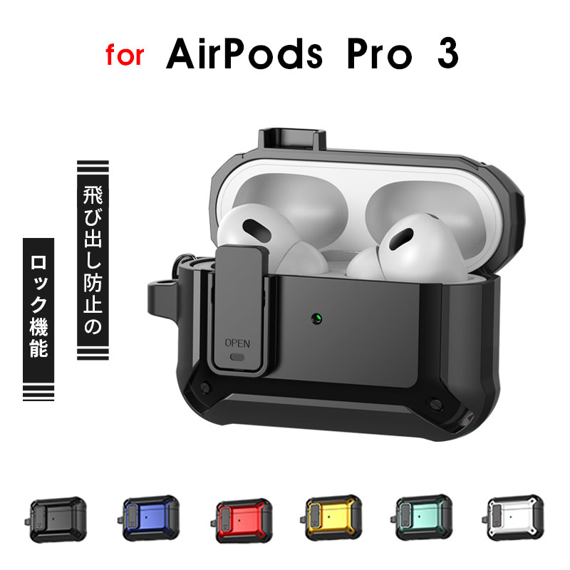 AirPods Pro 3 ケース AirPods Pro 第3世代 ケース カラビナ付 紛失防止 airpods pro 3 ケース airpods pro 第3世代 ケース 安全ロック付き ワイヤレスイヤホンケース エアーポッズプロ 第3世代 ケース 全面保護イヤホンケース