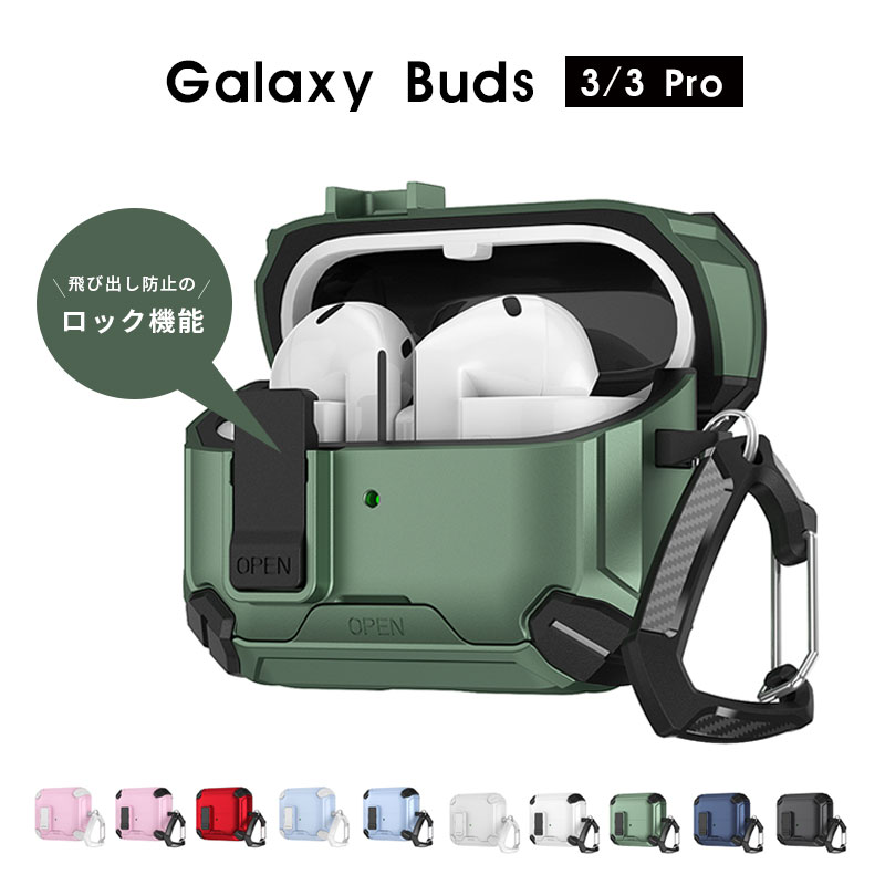 商品名Galaxy Buds3ケース Galaxy Buds3 Pro ケース カラビナ付 ギャラクシー バッズ 3 ケース 安全ロック付き ギャラクシーバッズ3プロ カバー 耐衝撃 イヤホンケース galaxy buds3ケース 紛失防止 Galaxy buds3 pro ケース 充電ケース 落下防止 全面保護 装着充電可能商品説明【2重構造で強力保護】ポリカーボネート素材とTPUの2重構造で、本体を傷から守ります。【飛び出しを防ぐロック機能】ロック機能はケースのフタをしっかり固定し、ワンタッチで解除できます。【カラビナ付き】持ち運びしやすく、腰やカバンに装着できるカラビナをケース側面につけました。【ケースを装着したまま充電が可能】底部に充電ポートの穴が開いているため、ケースを装着したまま充電をすることも可能です。内容量・イヤホンケース×1・カラビナ付×1※販売はケースのみです。素材・TPU・PC対応機種・Galaxy Buds3・Galaxy Buds3 Proカラー・ピンク01・ピンク02・ブルー01・ブルー02・ホワイト01・ホワイト02・レッド・グリーン・ネイビー・ブラック使用上の注意※ディスプレイ、モニターの仕様によって実際の色とやや異なって見える場合があります。※コンパクトなサイズのコネクターに対応した仕様となるため、近年使用される方が多くなったやや太めのコネクターなど、正規品を含む全ての充電ケーブルに対応した仕様ではありません。ご了承ください。※本製品は端末への傷や汚れを完全に防ぐものではありません。※製品の仕様、デザインは改良などのため事前予告なしに変更する場合があります。関連キーワードGalaxy Buds3ケース Galaxy Buds3 Pro ケース カラビナ付 ギャラクシー バッズ 3 ケース 安全ロック付き ギャラクシーバッズ3プロ カバー 耐衝撃 イヤホンケース galaxy buds3ケース 紛失防止 Galaxy buds3 pro ケース 充電ケース 落下防止 全面保護 装着充電可能
