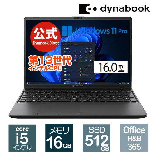 【BlackFriday期間中、店内全品P5倍!11/27 1:59まで!】【メーカー公式・直販】【売れ筋商品】dynabook PZ/MY(W6PZMY5PAB)(Windows 11 Pro Officeあり 16.0型ワイド(16:10)WUXGA 高輝度・広視野角 Core i5-1334U 16GBメモリ 512GB SSD ブラック)