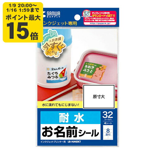【最大600円OFFクーポン配布中!1/16(金) 1:59まで】インクジェット耐水お名前シール(L・8面付・4シート) LB-NM8KT サンワサプライ