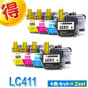 ブラザー プリンターインク LC411 4色パック×2セット LC411-4PK brother 互換インク カートリッジ 対応プリンター DCP-J526N DCP-J914N DCP-J926N-W DCP-J926N-B DCP-J1800N MFC-J739DN MFC-J904N MFC-J739DWN J939DN 純正インクよりお得 LC411BK LC411C LC411M LC411Y