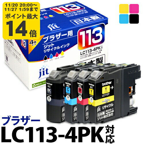 【標準容量】インク ブラザー brother LC113-4PK 4色セット対応 ジット リサイクルインク カートリッジ【TSS】[LO]