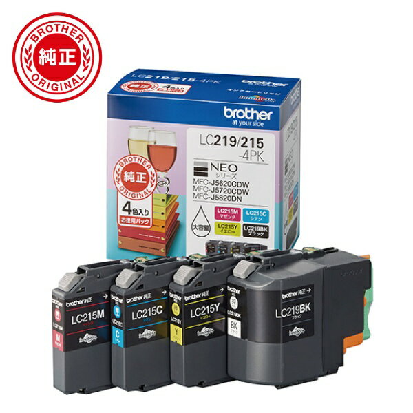 brother|ブラザー LC219/215-4PK 【ブラザー純正】インクカートリッジ4色パック(大容量) LC219/215-4PK 対応型番:MFC-J5720CDW、MFC-J5620CDW、MFC-J5820DN 他 4色パック(大容量)[LC2192154PK]