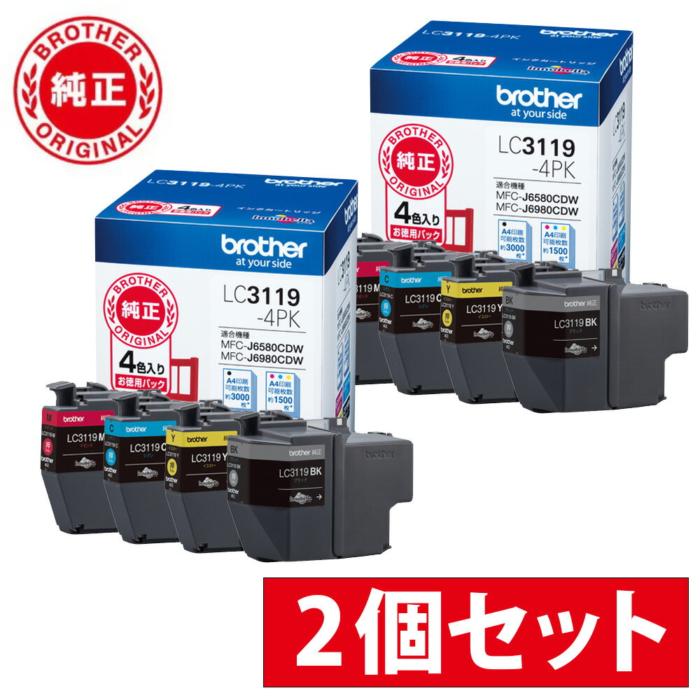 【2個セット】【純正】【送料無料】ブラザー LC3119-4PK インクカートリッジ大容量タイプ お徳用4色パック| 複合機 インク インクカートリッジ インクタンク 純正