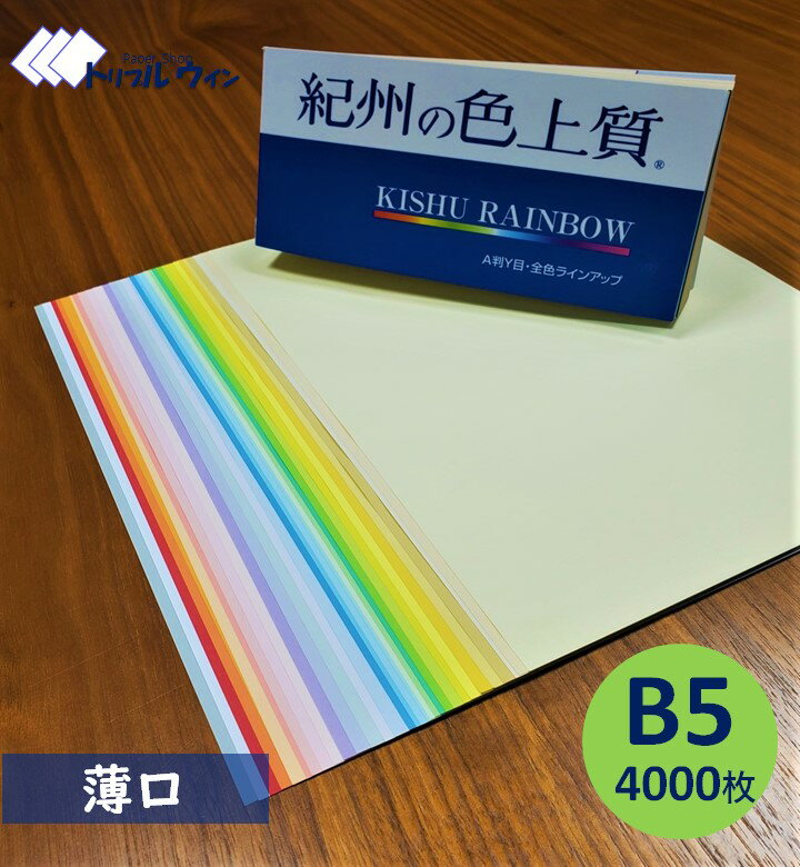 【楽天SS 全品P20倍】紀州の色上質紙 B5 薄口 4000枚 31色から選択可能