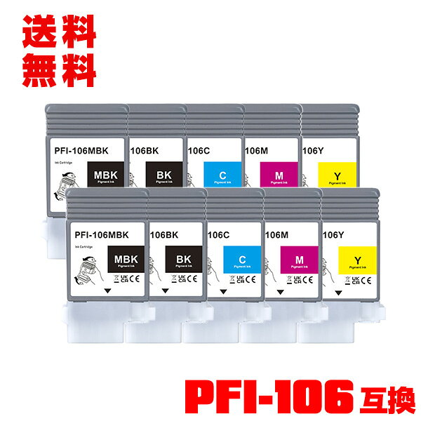 PFI-106MBK PFI-106BK PFI-106C PFI-106M PFI-106Y 顔料 お得な5色セット×2 メール便 送料無料 キヤノン用 互換 インクタンク (PFI-106 PFI 106 iPF6300 iPF6350 iPF6400 iPF6450 iPF6300S iPF6400S iPF6400SE iPF 6300 iPF 6350 iPF 6400 iPF 6450 iPF 6300S iPF 6400S)