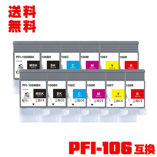 PFI-106MBK PFI-106BK PFI-106C PFI-106M PFI-106Y PFI-106R 顔料 お得な6色セット×2 メール便 送料無料 キヤノン用 互換 インクタンク (PFI-106 PFI 106 iPF6300 iPF6350 iPF6400 iPF6450 iPF6400SE iPF 6300 iPF 6350 iPF 6400 iPF 6450 iPF 6400SE)