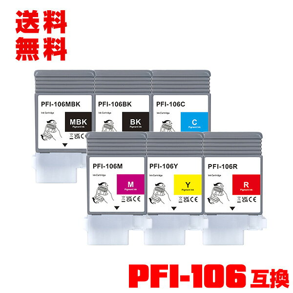 PFI-106MBK PFI-106BK PFI-106C PFI-106M PFI-106Y PFI-106R 顔料 6色セット メール便 送料無料 キヤノン用 互換 インクタンク (PFI-106 PFI 106 iPF6300 iPF6350 iPF6400 iPF6450 iPF6400SE iPF 6300 iPF 6350 iPF 6400 iPF 6450 iPF 6400SE)