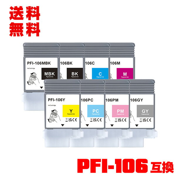 PFI-106MBK PFI-106BK PFI-106C PFI-106M PFI-106Y PFI-106PC PFI-106PM PFI-106GY 顔料 8色セット メール便 送料無料 キヤノン用 互換 インクタンク (PFI-106 PFI 106 iPF6300 iPF6350 iPF6400 iPF6450 iPF6300S iPF6400S)