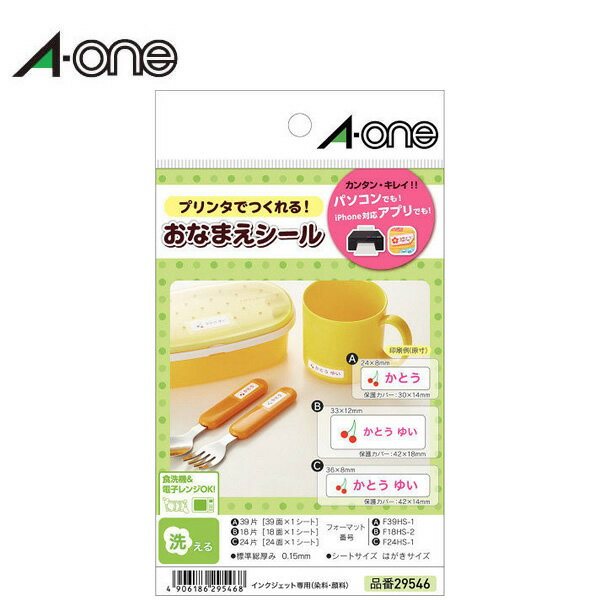 【はがきサイズ・3種類】エーワン/はがきサイズのプリンタラベル 洗えるお名前シール 3種類(18面・24面・39面)(29546)総入数81組(ラベル:3種類×1シート 保護カバー:3種類)水に強い光沢白無地フィルムタイプ 保護カバー付/A-one